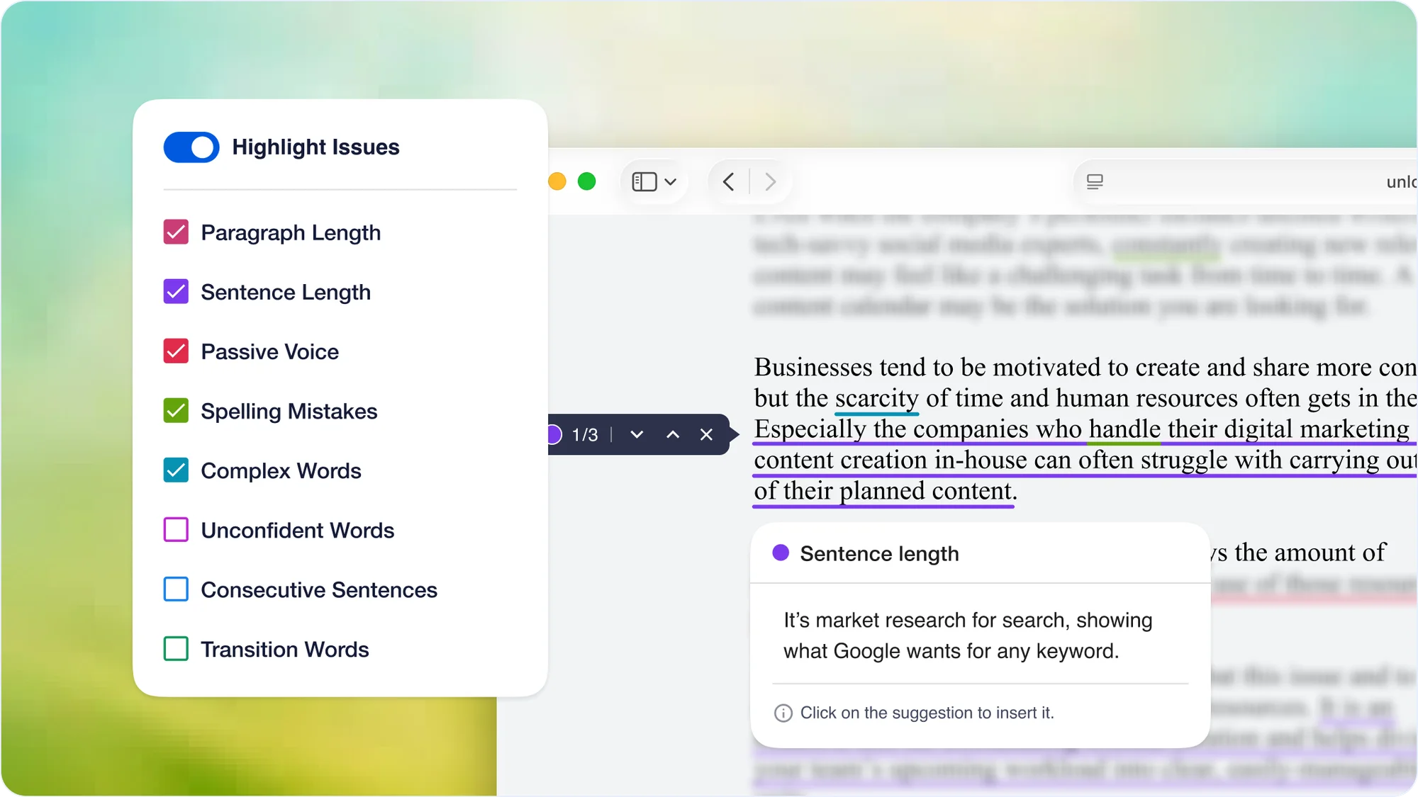 TruSEO, A Score That Teaches. SEO scores are usually a number you can't act on. I explored moving analysis closer to the content, the version that won put a highlighter inside the editor, marking phrases that need work.